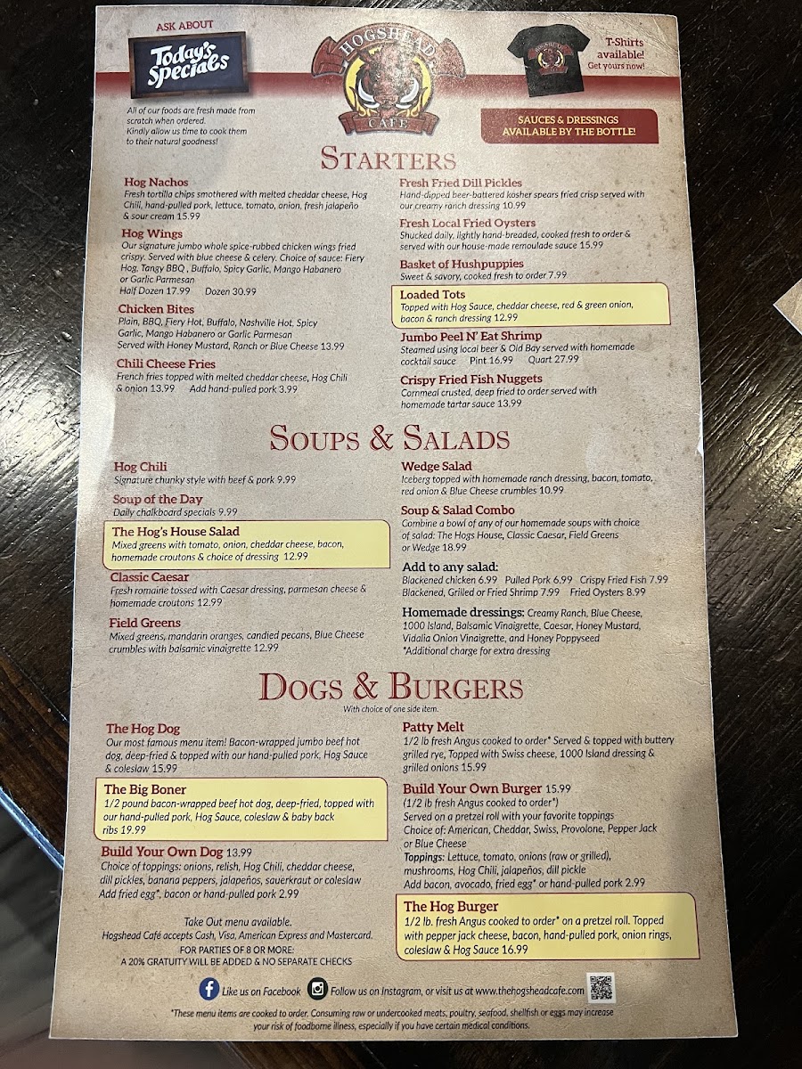 Welcome to HogsHead Cafe, nestled at 8902 W Broad St, Richmond, VA. This local gem is celebrated for its diverse menu that caters to everyone’s palate. Renowned for its smoky BBQ, each dish promises to ignite your taste buds. Don't miss their standout items like the Hog Wings, drizzled in house-made Hog Sauce, and the Nashville Hot Chicken Tacos, where bold flavors meet fresh ingredients.